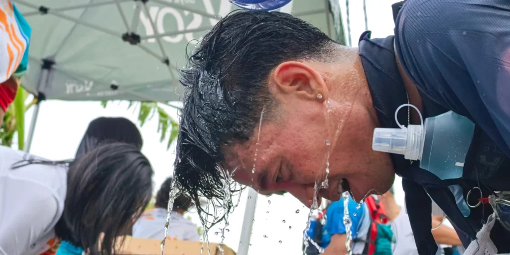 Muja sempat terjatuh. Bahkan mendapat bantuan dari panitia dan beberapa pelari lain. Beruntung, ia kembali pulih untuk melanjutkan hingga garis finis.
