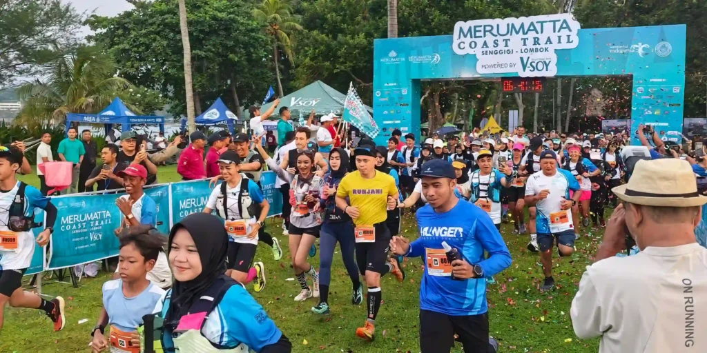 Hitung mundur 10 detik terakhir menjelang batas waktu kategori 25K Merumatta Coast Trail Marathon, Minggu (8/2/2026) siang dimulai. Di antara suara pembawa acara dan peserta lain yang lebih dulu finis, terdengar suara teriakan penyemangat.