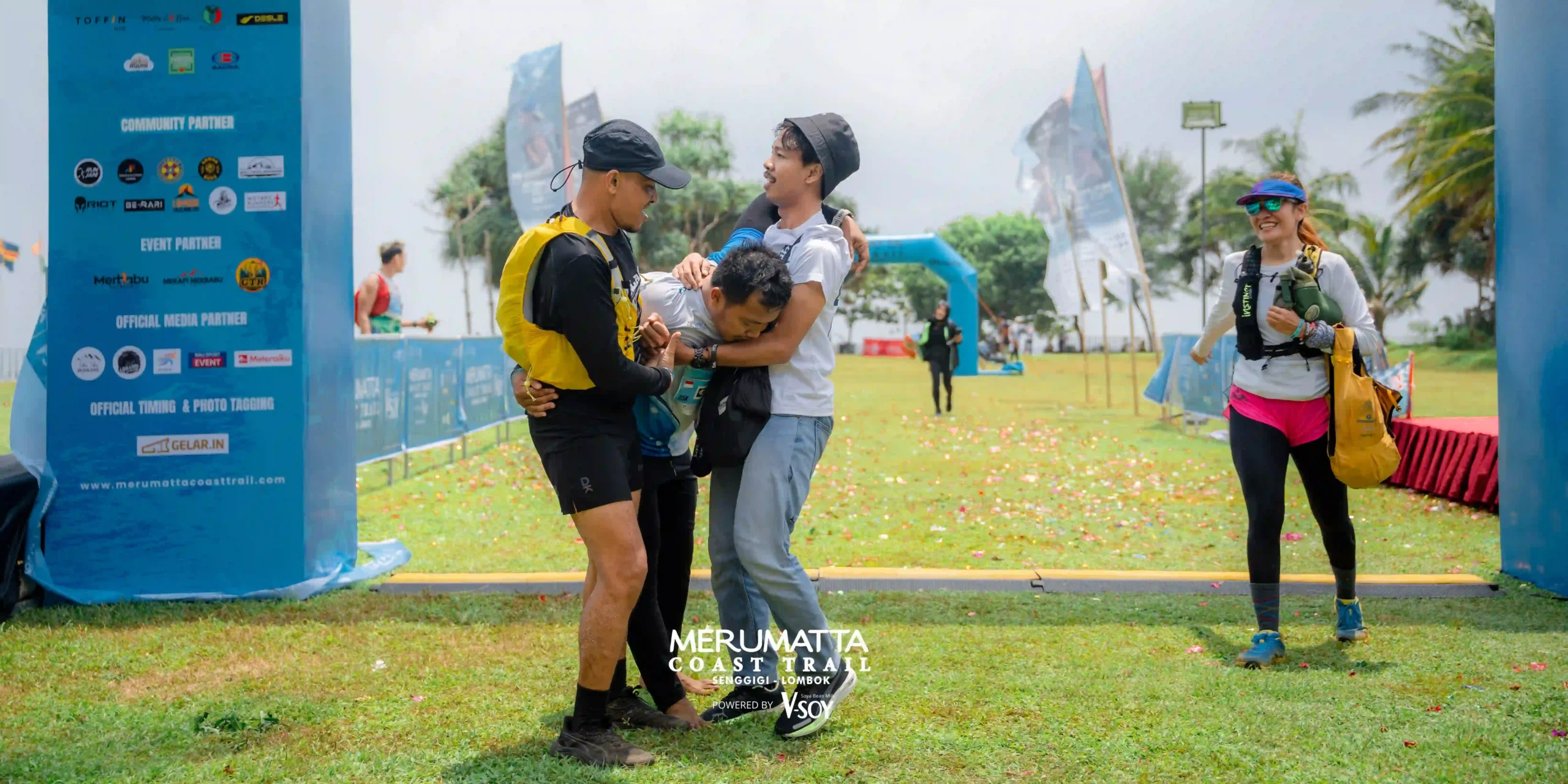 Tapi untuk sampai ke finis pun tidak mudah.Seperti Friska, Muja harus dipapah oleh beberapa sahabatnya dari Berari, komunitas lari di Lombok Timur. Muja finis dua menit menjelang COT. Tapi setelah melewati finis, ia tumbang dan harus mendapat perawatan tim medis.